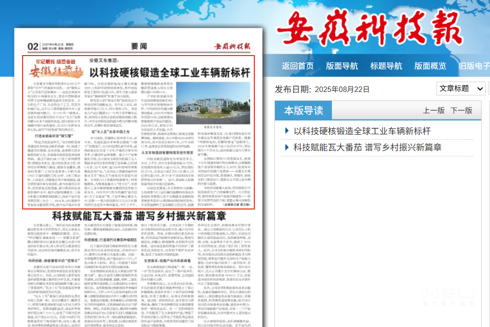 【安徽日報】安徽合力2025半年報發布 增長“第二曲線”加速形成