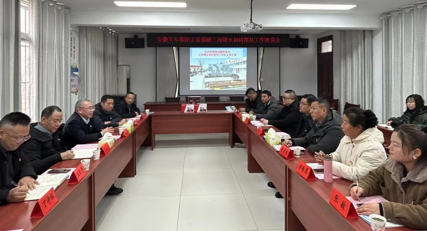 12月28日下午,安徽叉車集團黨委書記、董事長、總經理楊安國赴集團公司鄉村振興定點幫扶村——肥西縣三河鎮永和村調研走訪鄉村振興定點幫扶工作,并開展慰問活動。肥西縣三河鎮黨委書記劉舒暢等相關領導參加調研。   召開鄉村振興工作座談會   在聽取安徽叉...
